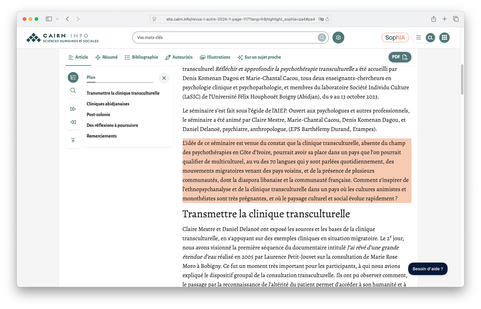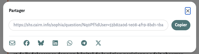 SophIA met en avant des paragraphes issus des publications de Cairn.info. En cliquant sur ces extraits, vous accédez à la page complète de l’article (si vous disposez des droits d’accès).